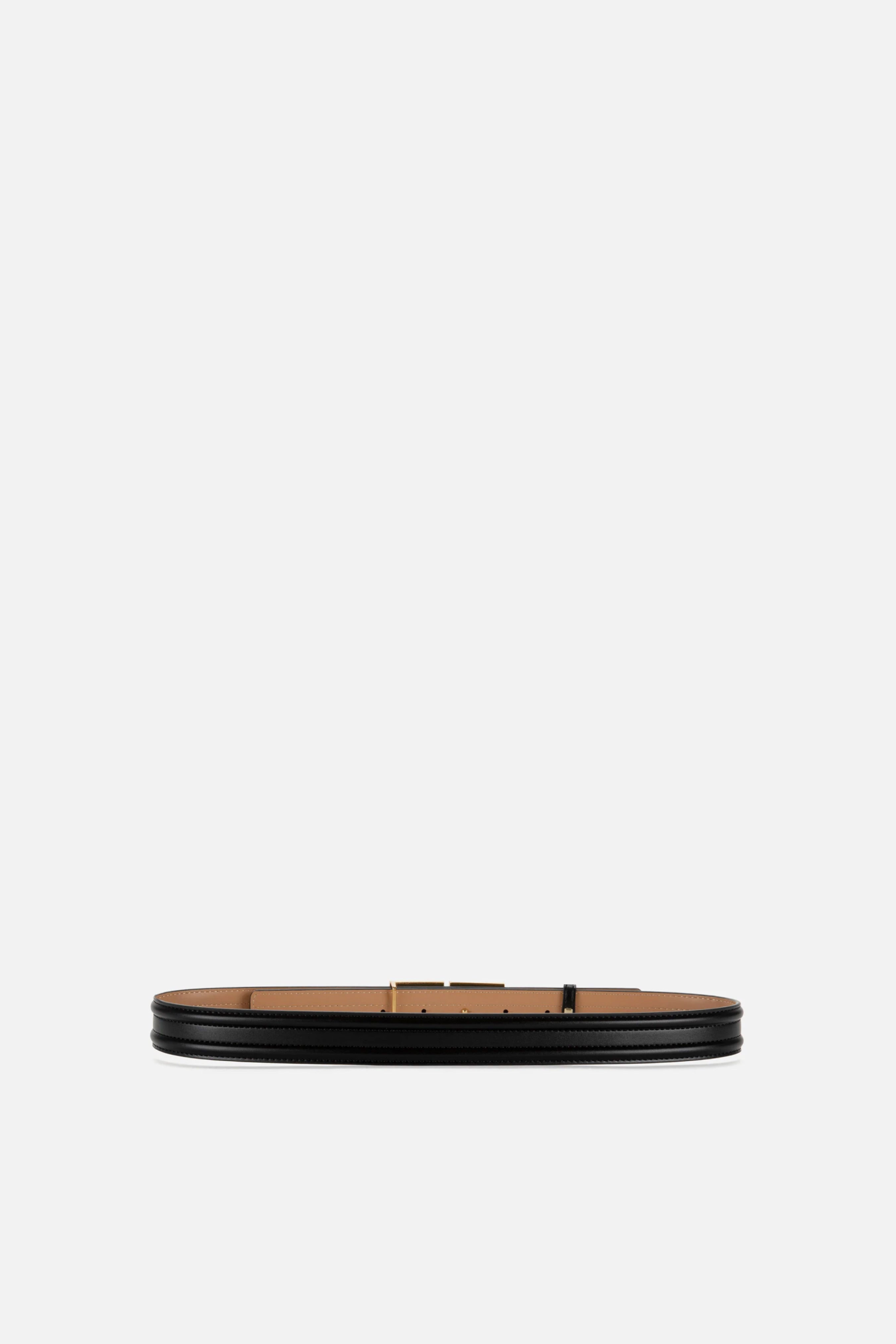 Questa cintura nera è l'accessorio perfetto per definire la silhouette e aggiungere un tocco di classe a pantaloni, gonne e abiti. La larghezza di 28 mm garantisce il giusto equilibrio tra eleganza e presenza, mentre la produzione animal free riflette un impegno verso la moda responsabile.