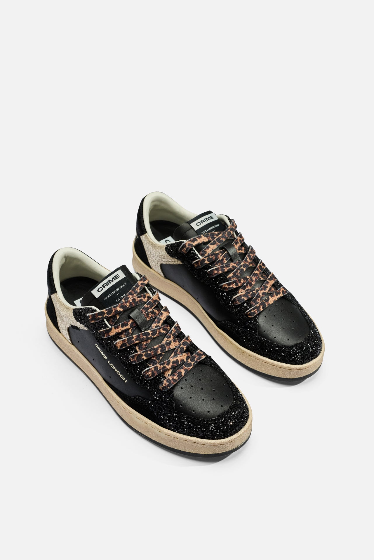 Le sneakers Crime London in fantasia multi black rappresentano l'incontro perfetto tra stile urbano e carattere audace. Realizzate con materiali selezionati che combinano pelle e altri componenti di qualità, queste calzature si distinguono per il loro design contemporaneo e la combinazione di tonalità nere con dettagli multicolore che catturano l'attenzione. La texture sofisticata e la silhouette moderna le rendono perfette per accompagnarti dal weekend agli impegni quotidiani con stile disinvolto e personalità distintiva.