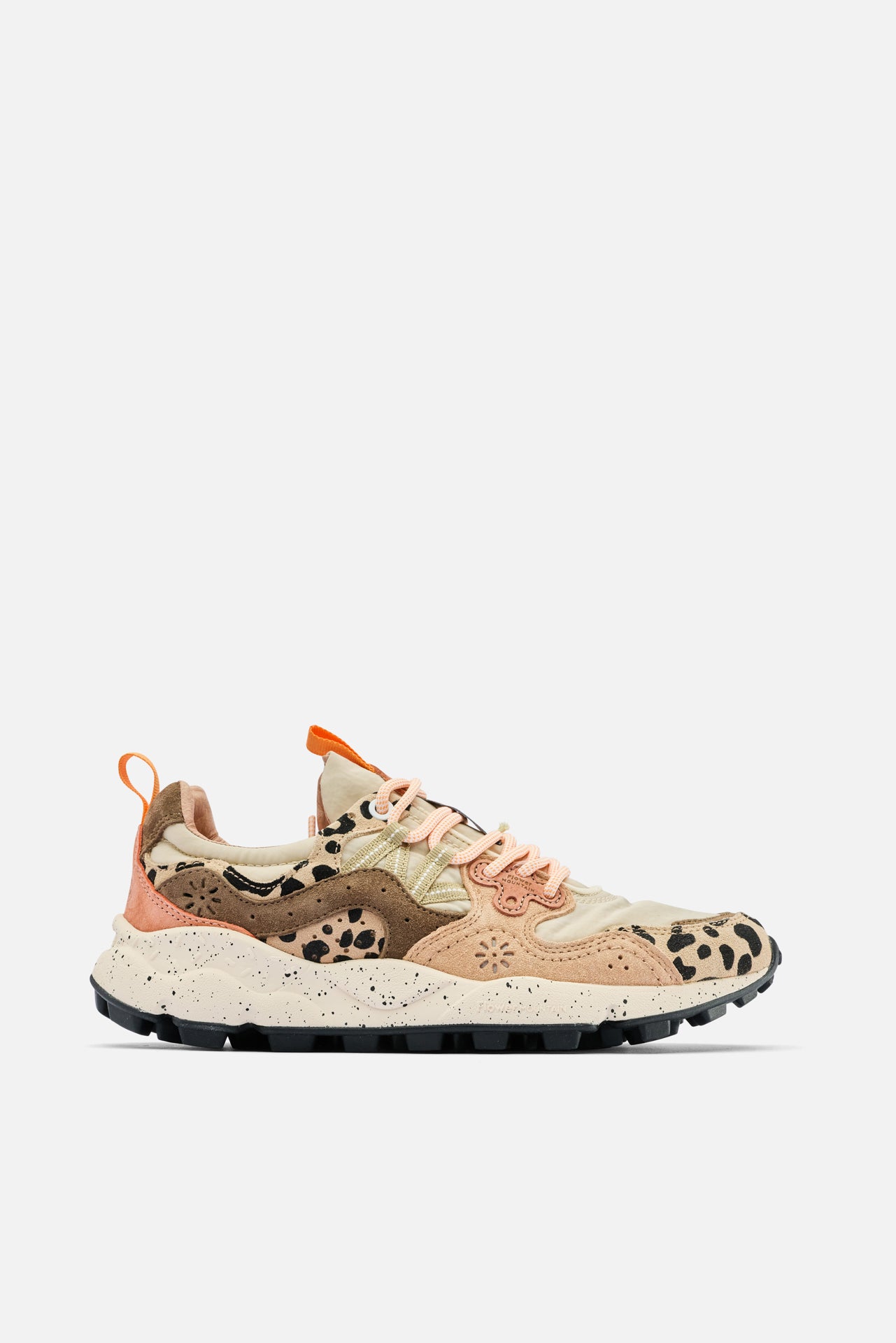 Specifiche: Tomaia con componenti selezionati. Fantasia multi leopard. Un modello statement firmato Flower Mountain per chi ama lo stile outdoor-chic.