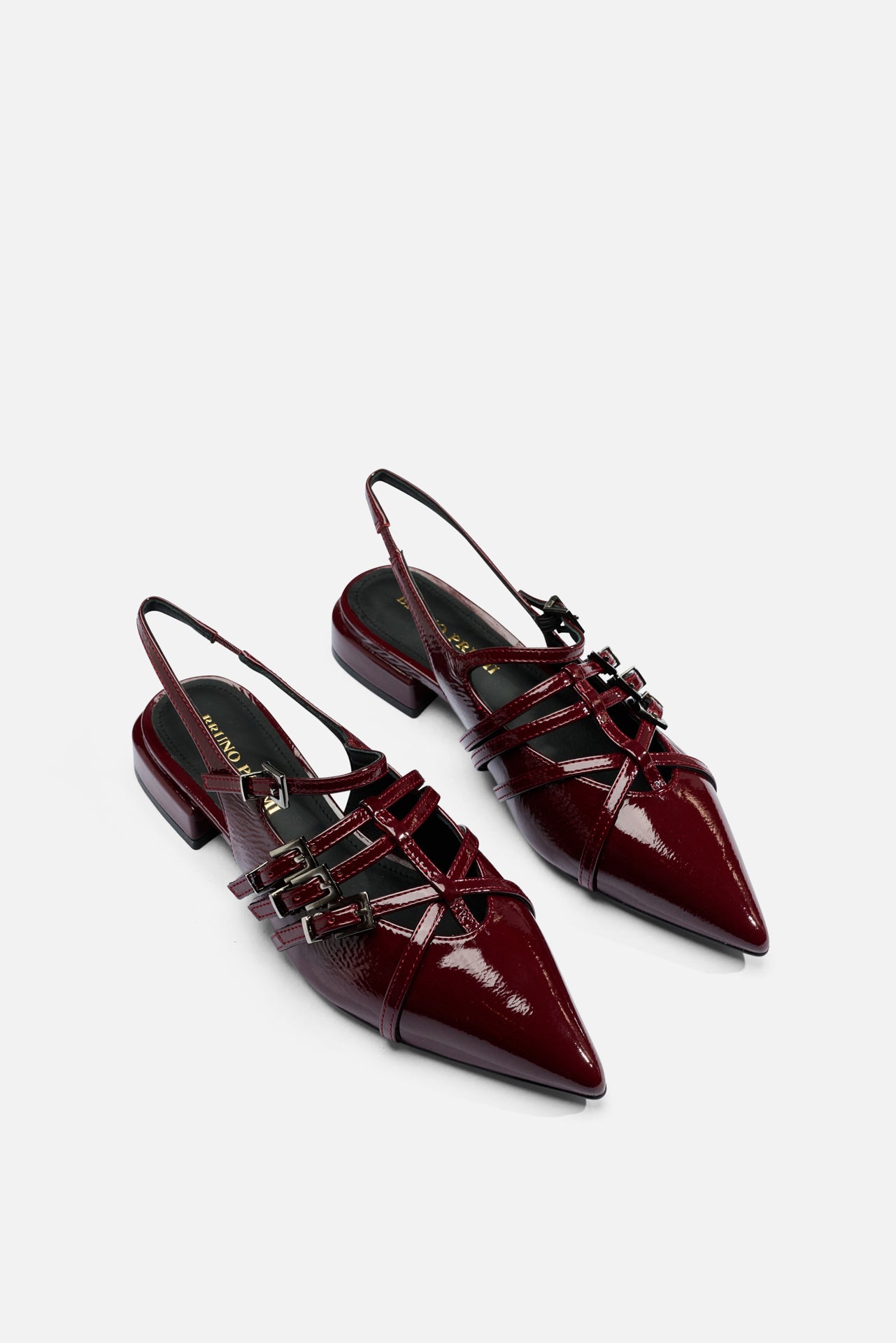 Le slingback Bruno Premi in pelle Naplak bordeaux rappresentano l'eccellenza della calzatura artigianale. Realizzate con pelle Naplak di alta qualità che garantisce una finitura lucida e resistente, queste calzature si distinguono per la cura artigianale, il design sofisticato e i raffinati cinturini che impreziosiscono la silhouette. La tonalità bordeaux profonda conferisce carattere e personalità, mentre il tacco basso garantisce comfort e stile impeccabile per tutta la giornata.