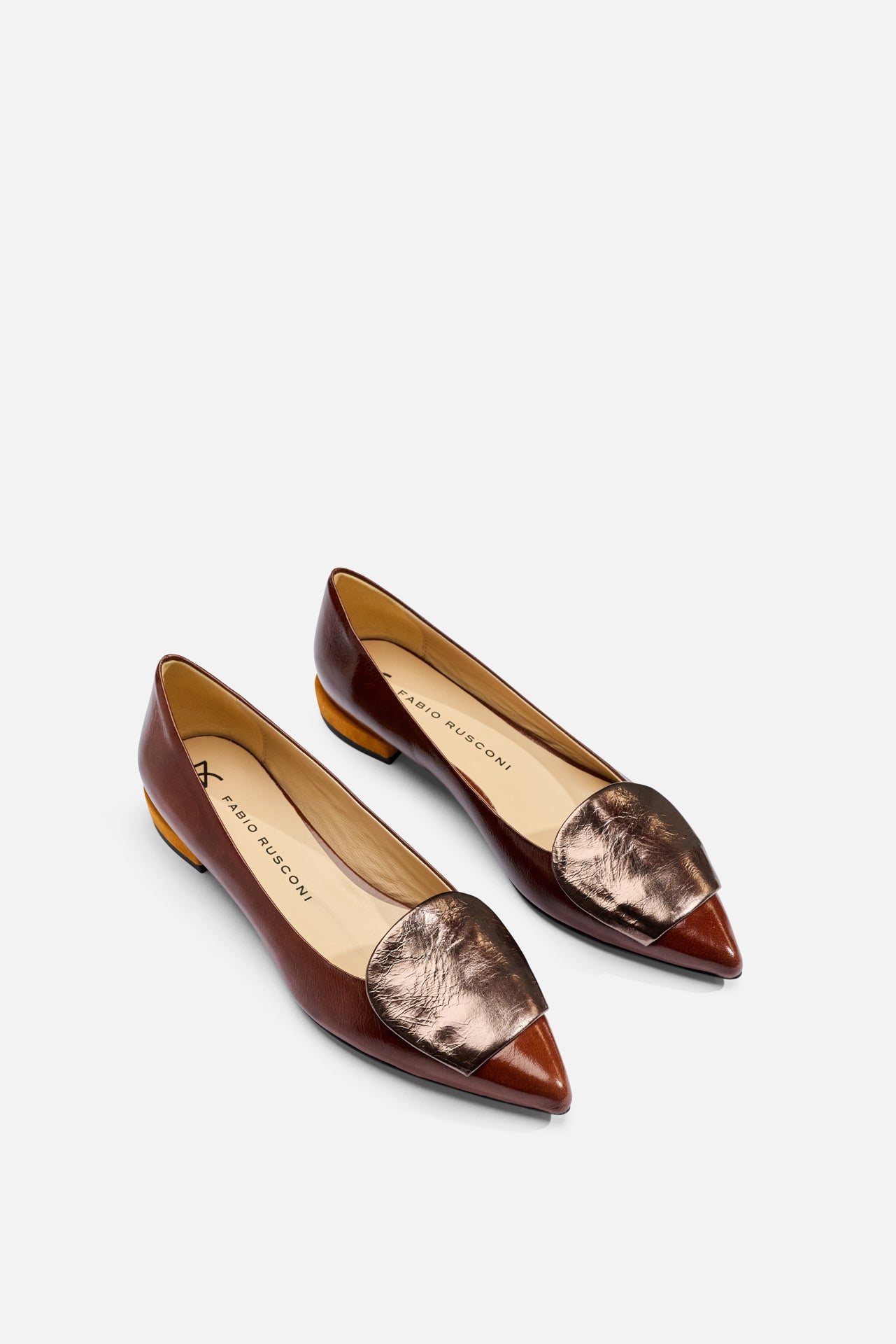 Le ballerine Fabio Rusconi in fantasia multi brown rappresentano l'eccellenza dell'artigianalità e il design sofisticato. Realizzate con materiali selezionati che combinano pelle e altri componenti di qualità, queste calzature si distinguono per la loro texture multicolore nelle tonalità del marrone che conferisce carattere e originalità. Il design raffinato e la versatilità le rendono perfette per accompagnarti dal lavoro al tempo libero con stile impeccabile e comfort superiore.